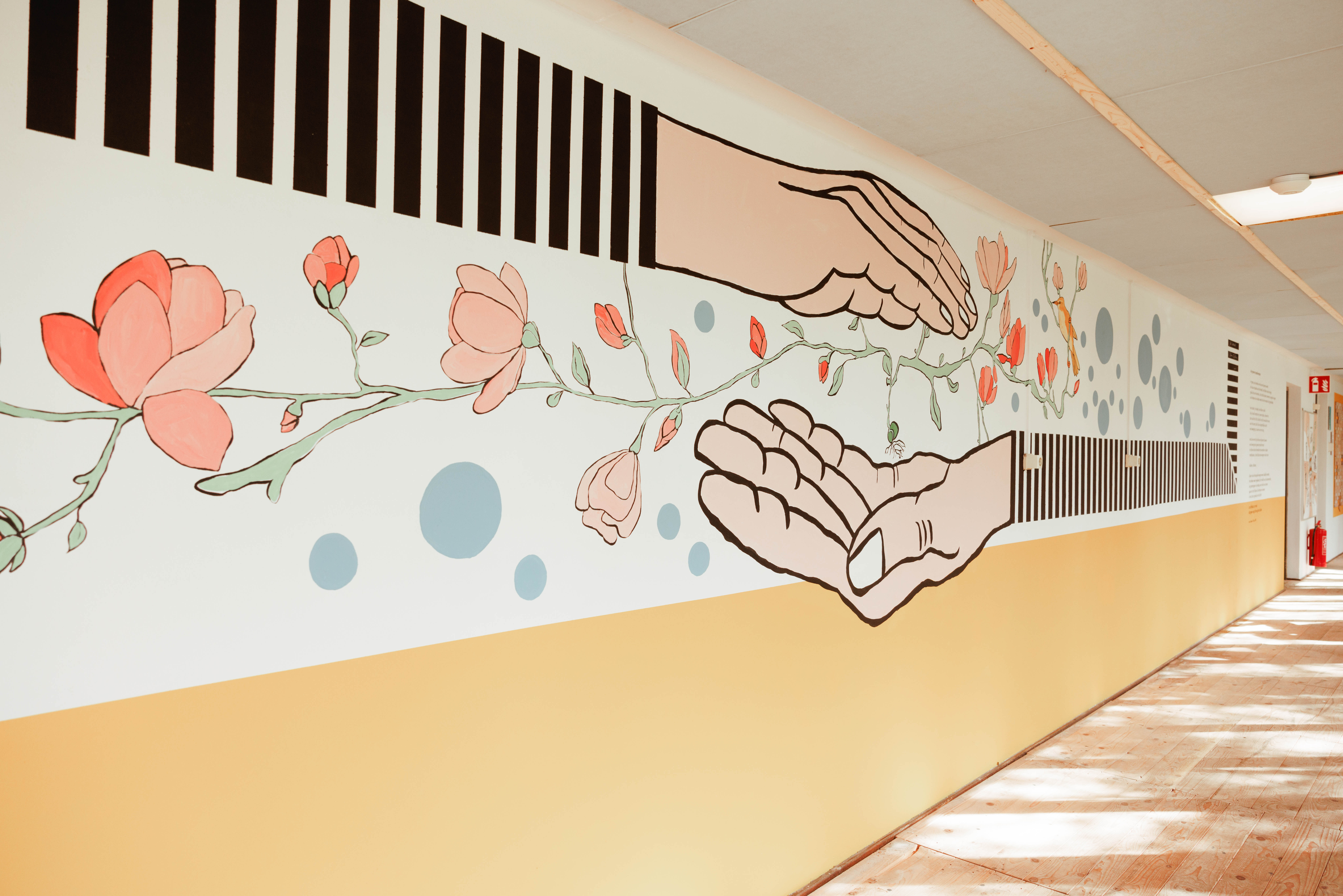 "We maakten de muurschildering in de laatste weken voor de opening. Tussen alle klussers, zonder vooropgezet plan, we begonnen gewoon en lieten ons leiden door de ideeën die spontaan in ons opkwamen in de omgeving van De Groene Transformator. Na de opening ben ik vaak teruggekomen, om mensen uit het hele land te laten zien wat ik gemaakt had maar vooral ook om ze De Groene Transformator te laten proeven. Uit plaatsvervangende trots, trots dat ik hier met een klein project onderdeel van ben en trots dat onze stad zoiets goeds en groeiends herbergt."