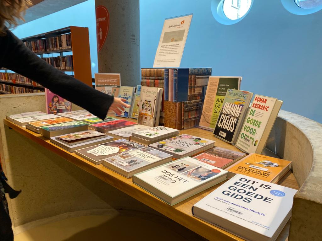 Tafel vol duurzame boekentips bij de bieb in Roermond