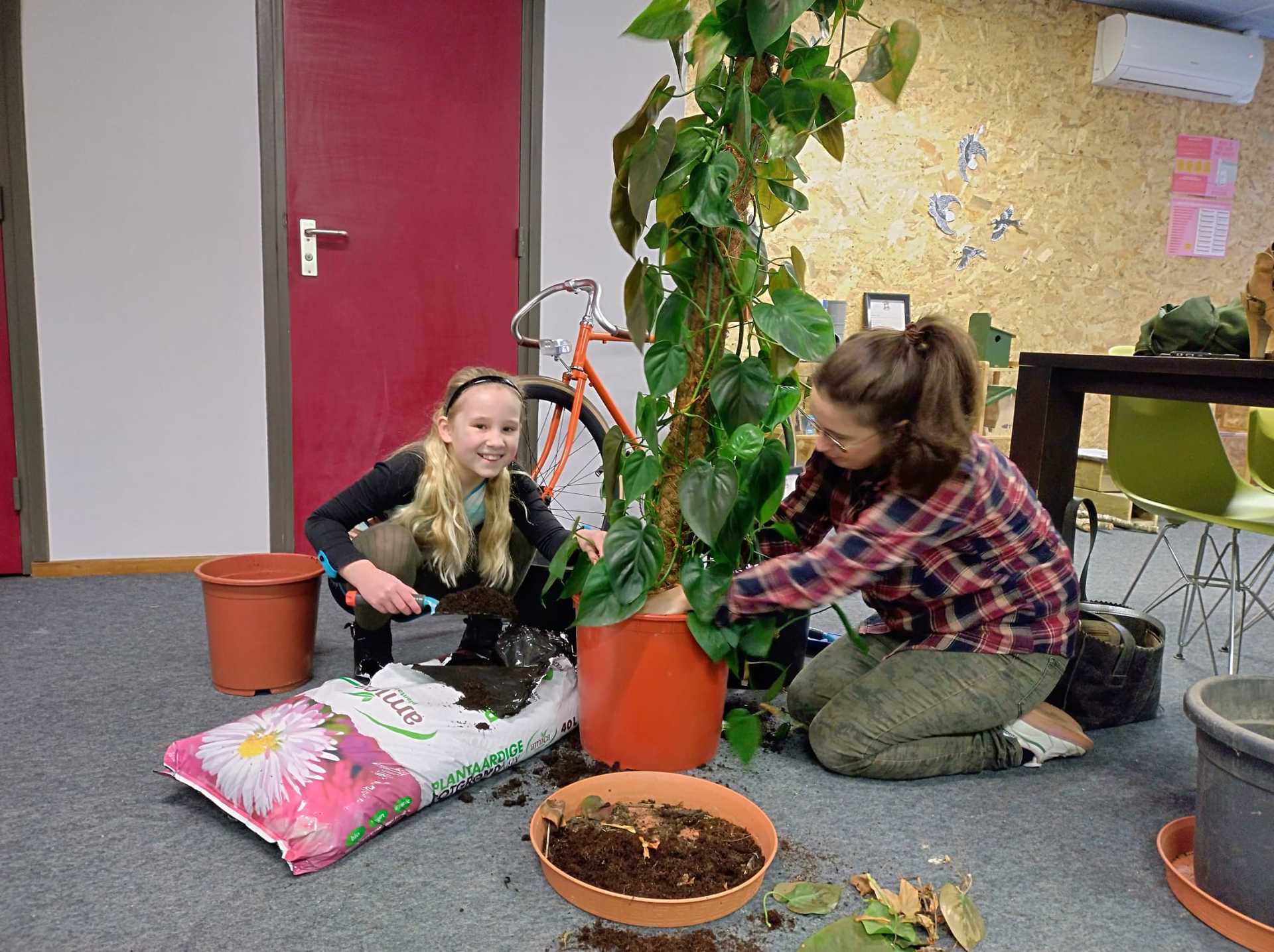 Vrijwilligers Renata en haar dochter Babet grepen in en hebben de handen uit de mouwen gestoken om de planten te verzorgen. Heel veel liefde, zorg voor de optimale omgeving en hopen dat het klimaat in ons gebouw de planten laat groeien.