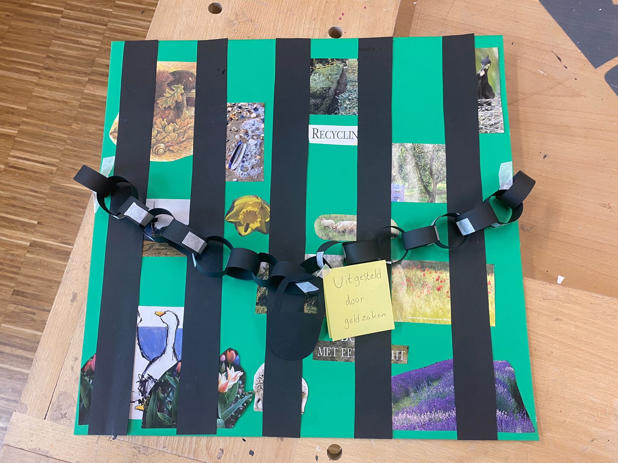 Na ruim een uur mocht Ilse namens de Groene Transformator de werkstukken in ontvangst nemen. De werkstukken waren groots en gingen op de fiets niet mee. Gelukkig woont Patricia om de hoek en heeft meegeholpen om alle kunstwerken heelhuids naar De Groene Transformator te brengen waar ze inmiddels een plek hebben gekregen.