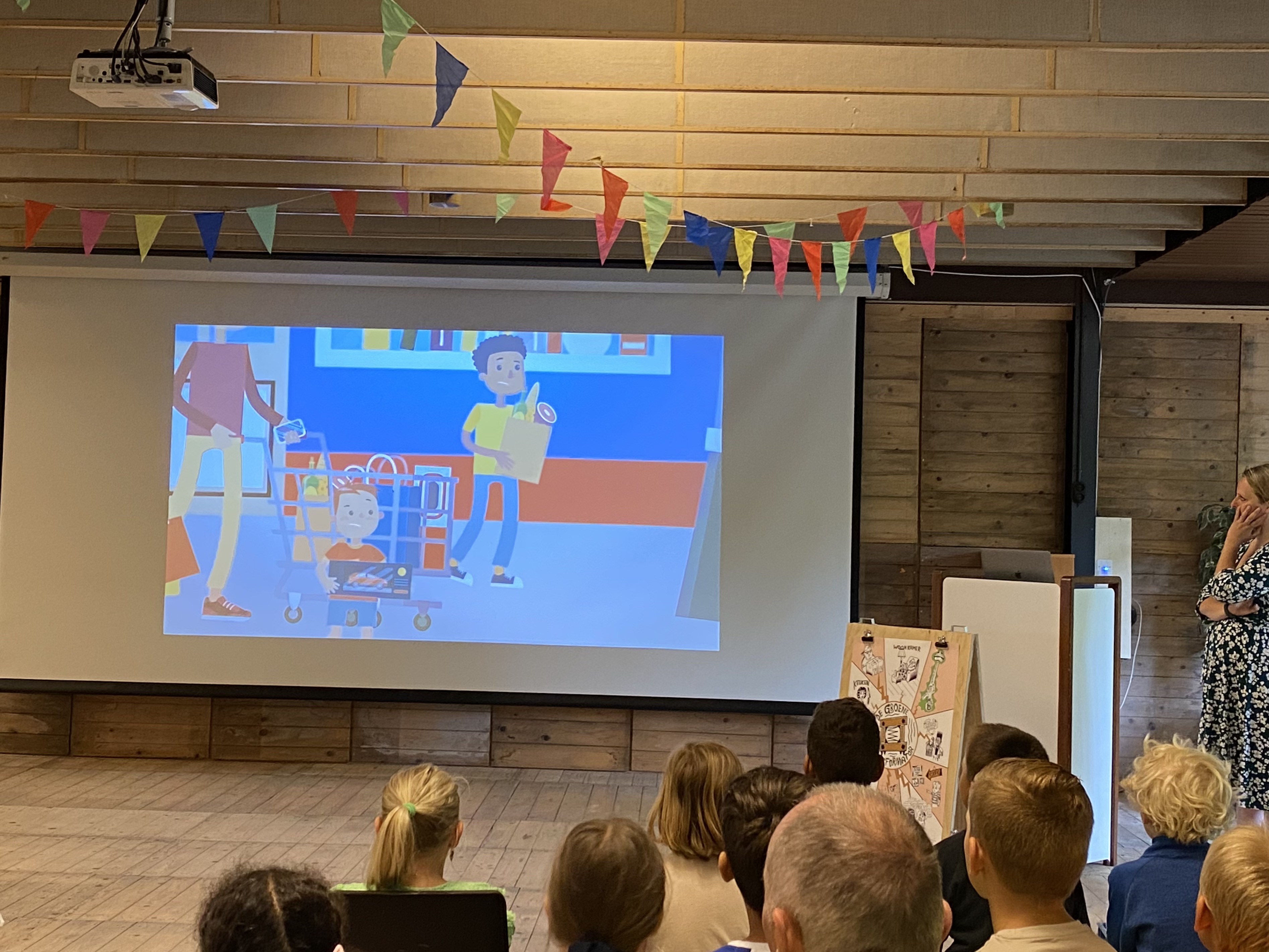 Op 29 juni kwamen ze in 4 groepen van 25-30 leerlingen op bezoek. De kinderen kregen een paar minuten een video te zien van het Impact project. Vervolgens lieten we zien dat een product al een hele weg erop heeft zitten voordat het in de winkel terecht komt. Ook telden ze het aantal naden van een kledingstuk. Wist je dat er alleen al zoveel kleermakers aan het kledingstuk hebben gewerkt als het aantal naden dat het heeft?