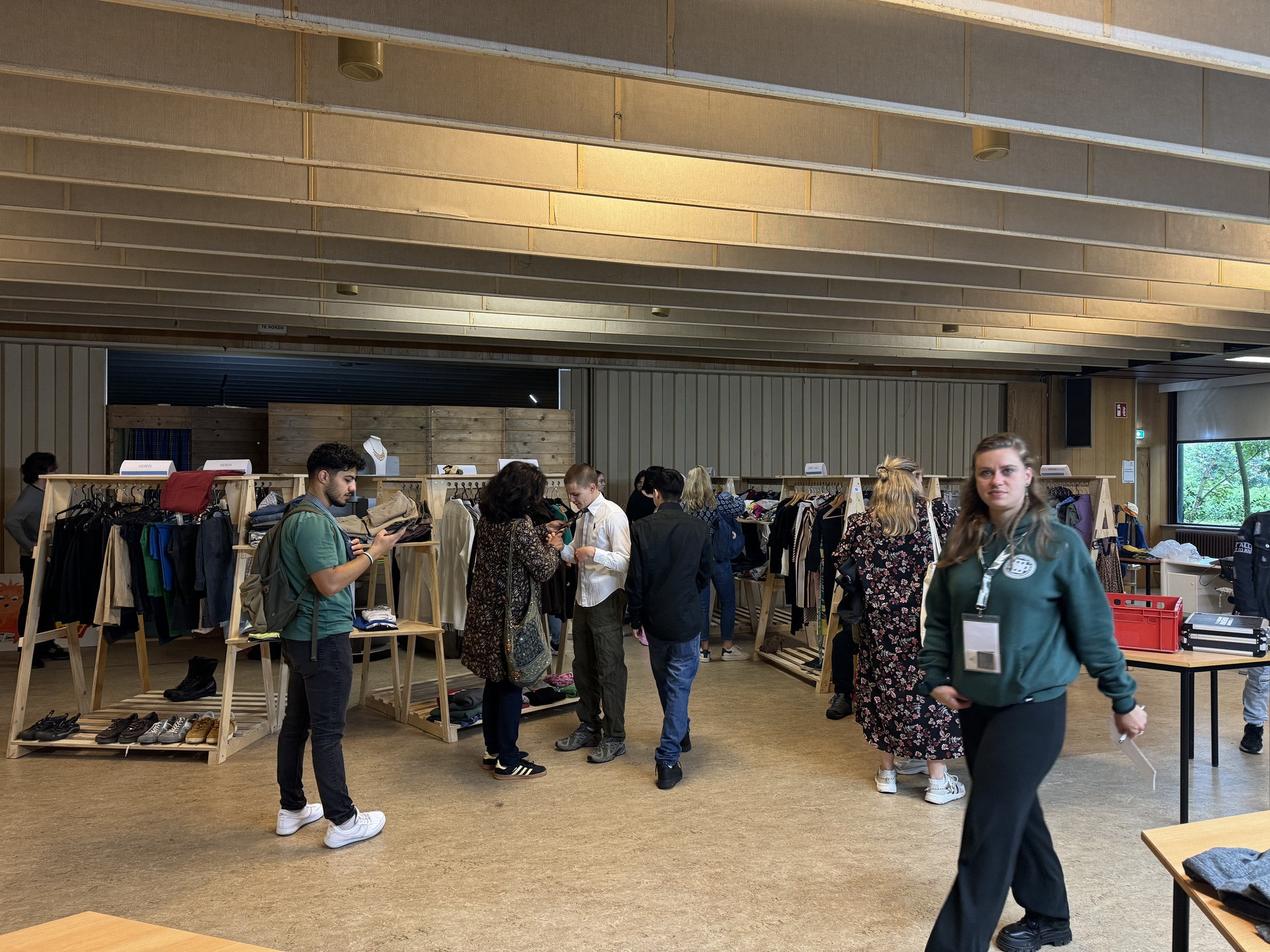 Na een korte introductie hebben we een kijkje genomen bij het repair café en de kledingruil. Hier werd enthousiast rondgekeken. Het was leuk om te zien hoe de linkjes gelegd werden tussen kledingruil en repair café. Een van de meiden vond een leuk rokje, maar de maat was te groot. Zij stelde de vraag of het misschien in het repair café kleiner gemaakt kon worden. Vrijwilliger Christa heeft dit met alle liefde geregeld. Een van de jongens heeft van vrijwilliger Fiel een les gekregen in het strikken van een stropdas. (De rest van de ochtend heeft hij vol trots rondgelopen met deze perfect geknoopte stropdas).