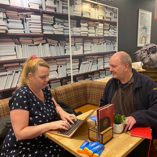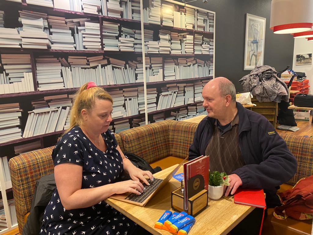 Het was fijn om Carolien Caspers aan te treffen bij Brasserie 't Literatuurtje tijdens de gesprekken vooraf. Ze vroeg o.a. aandacht voor 'hoe' veranderingen tot stand komen en graag succesvolle verhalen van initiatieven wil delen. Joost Geraets, een van onze actieve vrijwilligers, was ook aanwezig om aandacht te vragen voor een andere grote passie van hem; de dassen. Na een enthousiast bericht dat Joost ook was uitgenodigd voor de live uitzending vanuit de bieb ging Patricia langs om Joost te supporten.