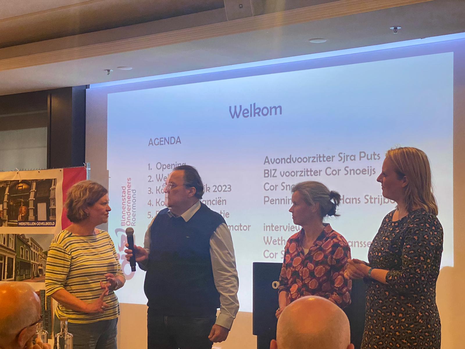 Tijdens een druk bezochte BIZ bijeenkomst in van der Valk TheaterHotel De Oranjerie heeft Stichting BIZ Binnenstad Roermond o.l.v. voorzitter Cor Snoeijs en onder gespreksleiding van Sjra Puts de aanwezigen meegenomen naar de toekomst van de BIZ Binnenstad. Een stad die klaar moet zijn om economisch, duurzaam, sociaal en cultureel fit te zijn voor de toekomst. Het credo is “We werken samen aan onze toekomst”. Ondernemers, jongeren, senioren, kunst en cultuur, overige stakeholders én gemeente Roermond slaan de handen in elkaar. Een BIZ (Bedrijven Investerings Zone) is vergelijkbaar met een vereniging van eigenaren voor een gebouw, maar dan voor een winkelgebied of bedrijventerrein. Het biedt ondernemers de mogelijkheid om bovenop de inspanningen van de gemeente, te investeren in de kwaliteit van de directe werkomgeving.