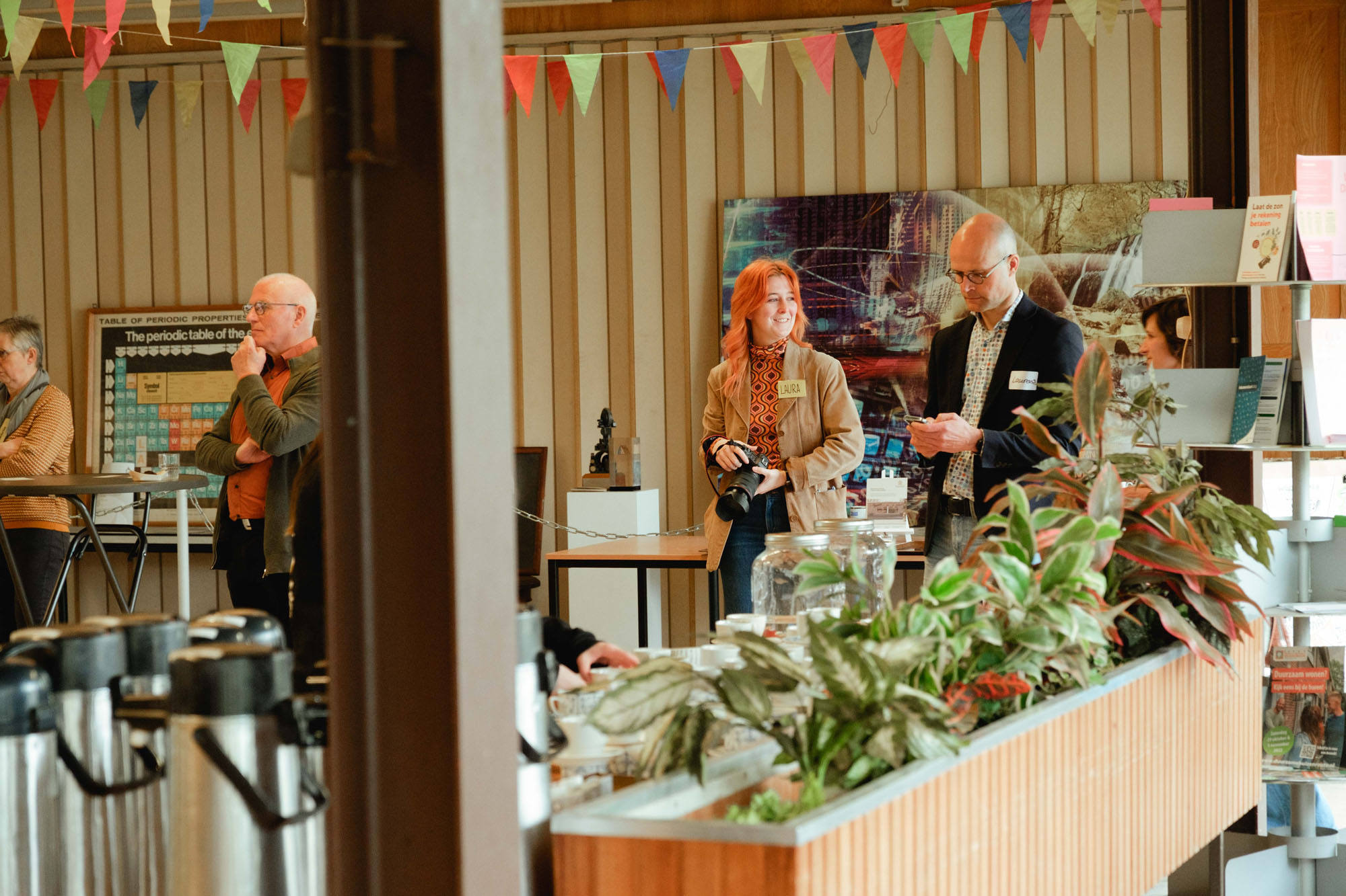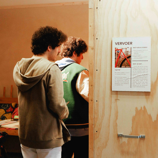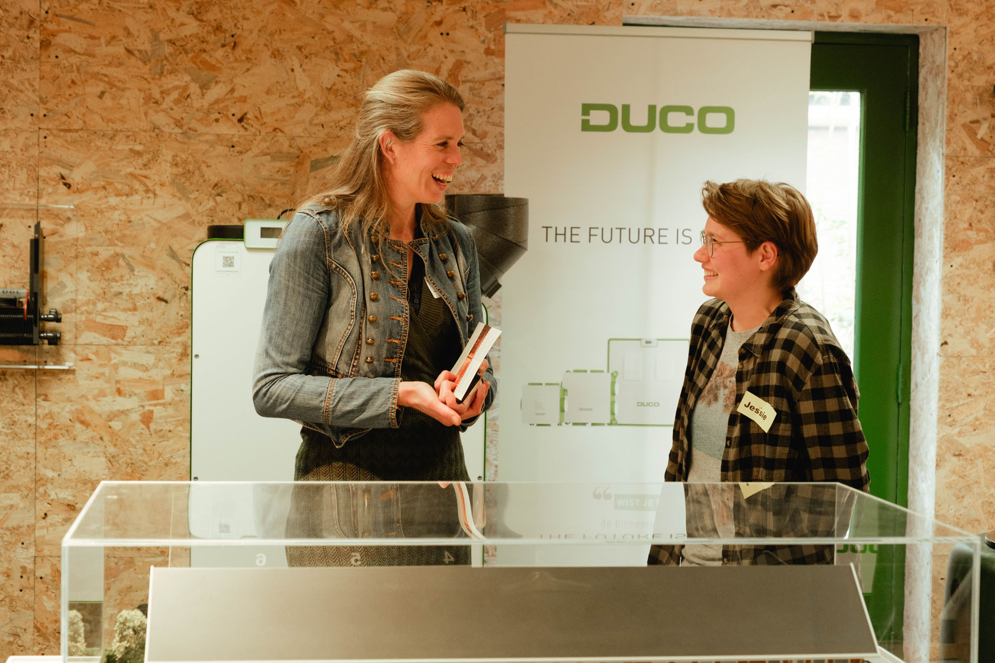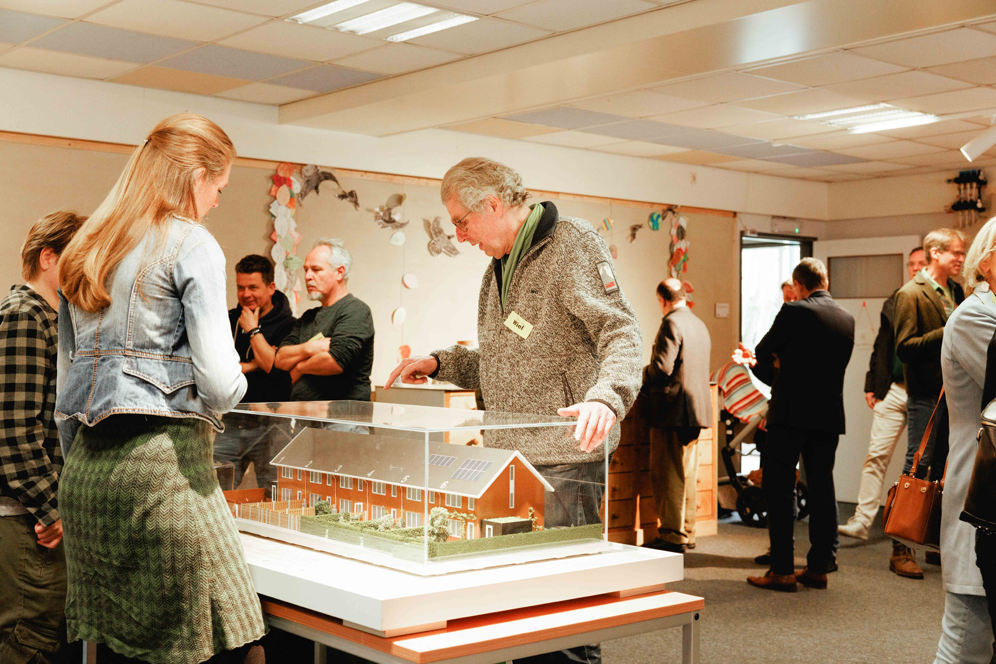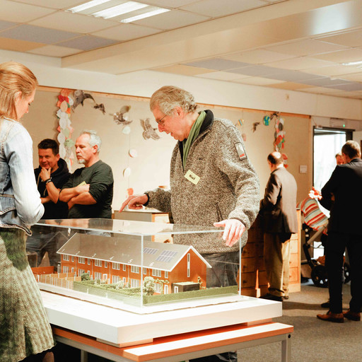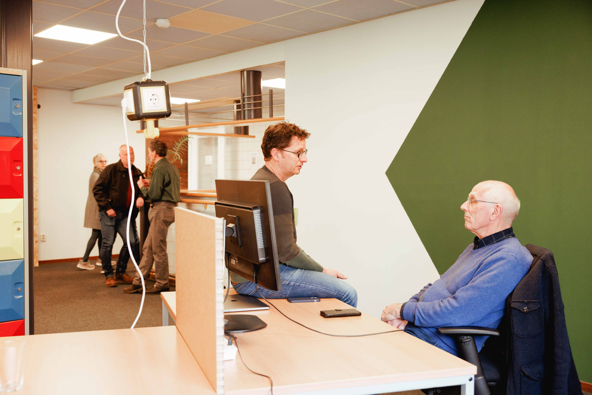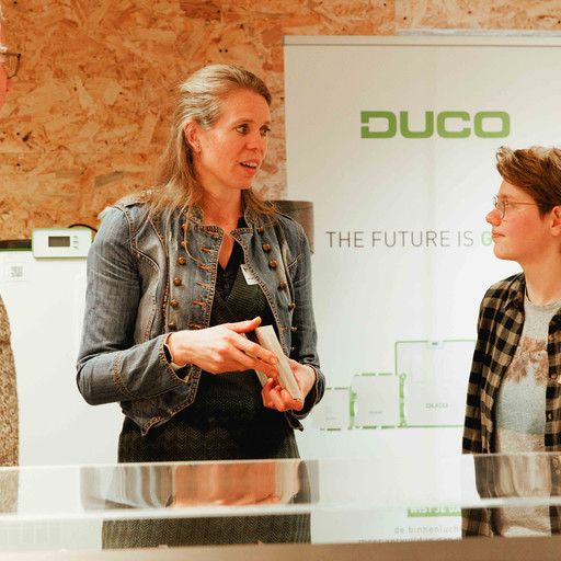 De deuren van het inspiratiehuis staan open en de energieadviseur is tijdens openingstijden aanwezig om de bezoekers gratis energieadvies te geven.