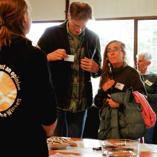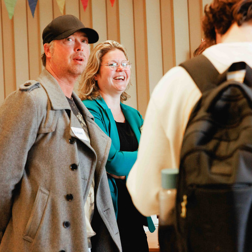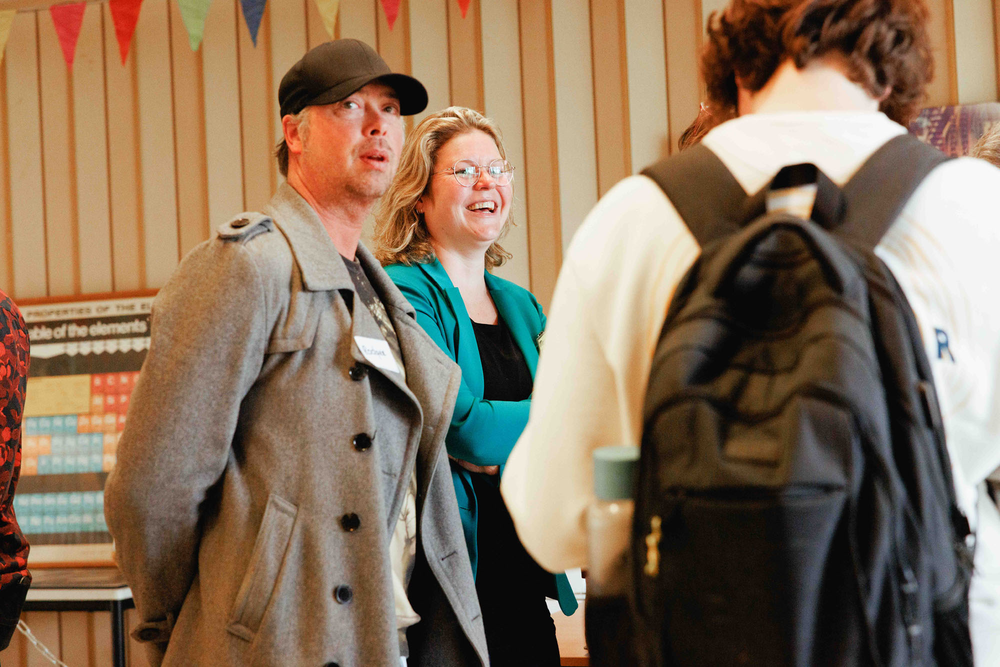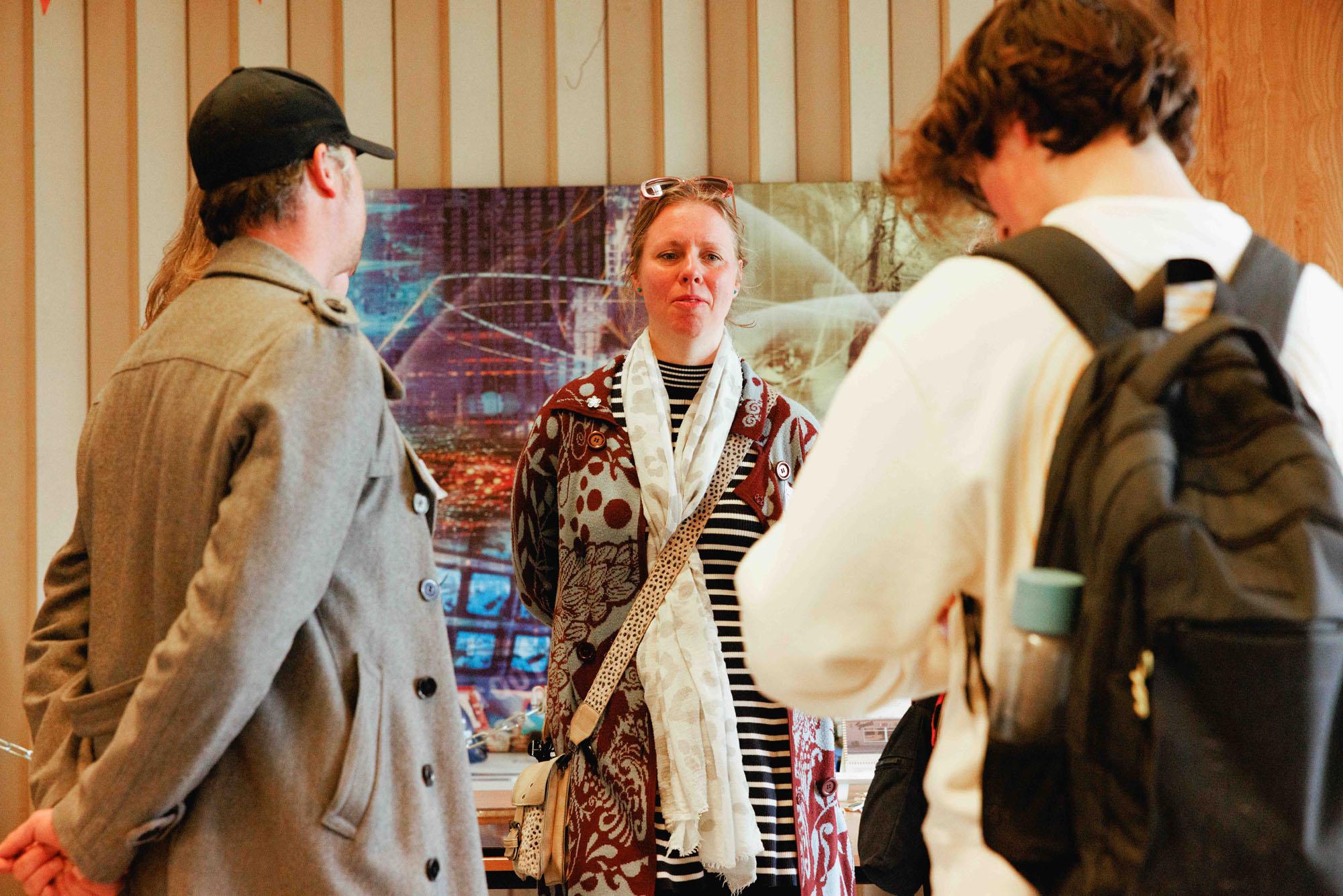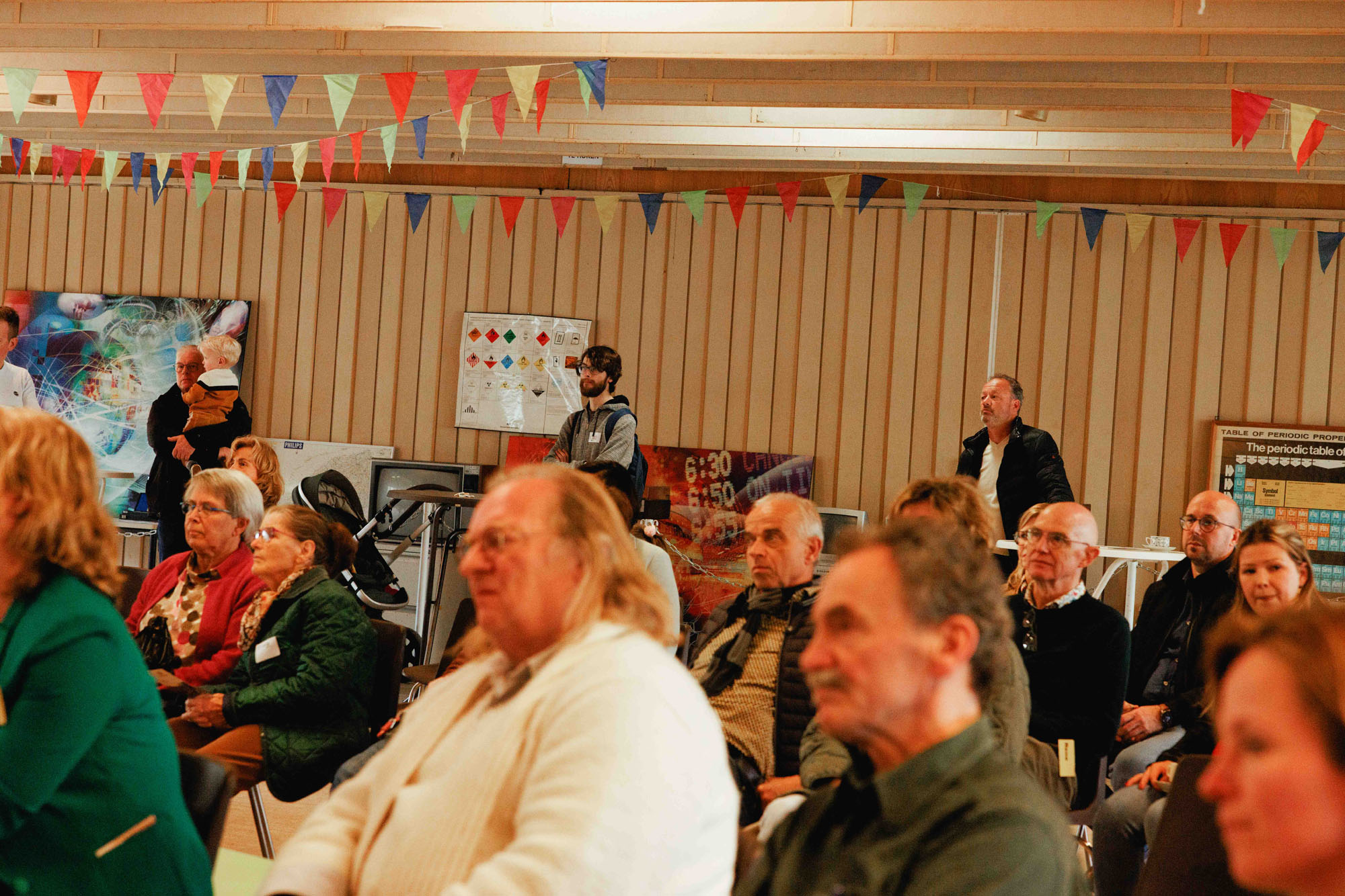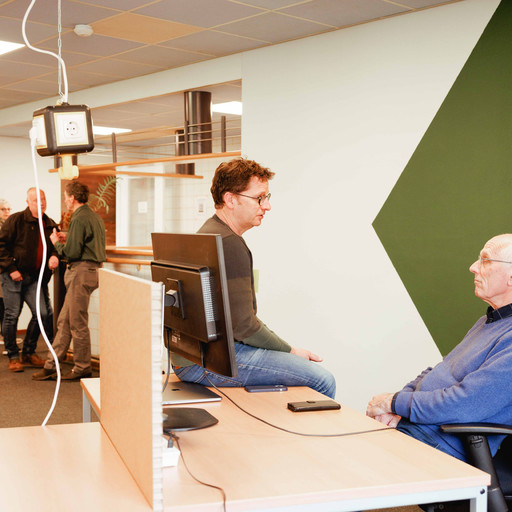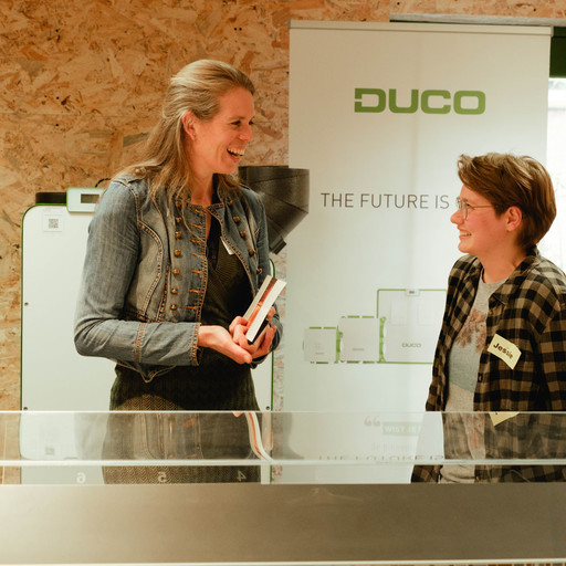De deuren van het inspiratiehuis staan open en de energieadviseur is tijdens openingstijden aanwezig om de bezoekers gratis energieadvies te geven.