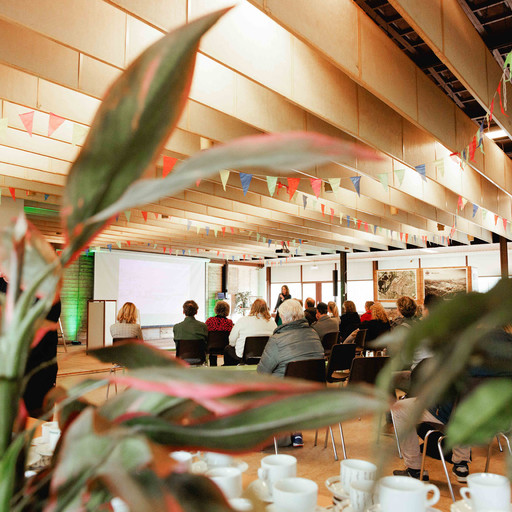 De Groene Zaal biedt op aanvraag ruimte voor grotere bijeenkomsten of workshops.