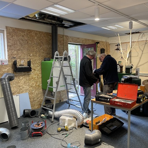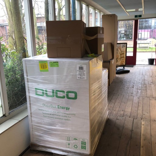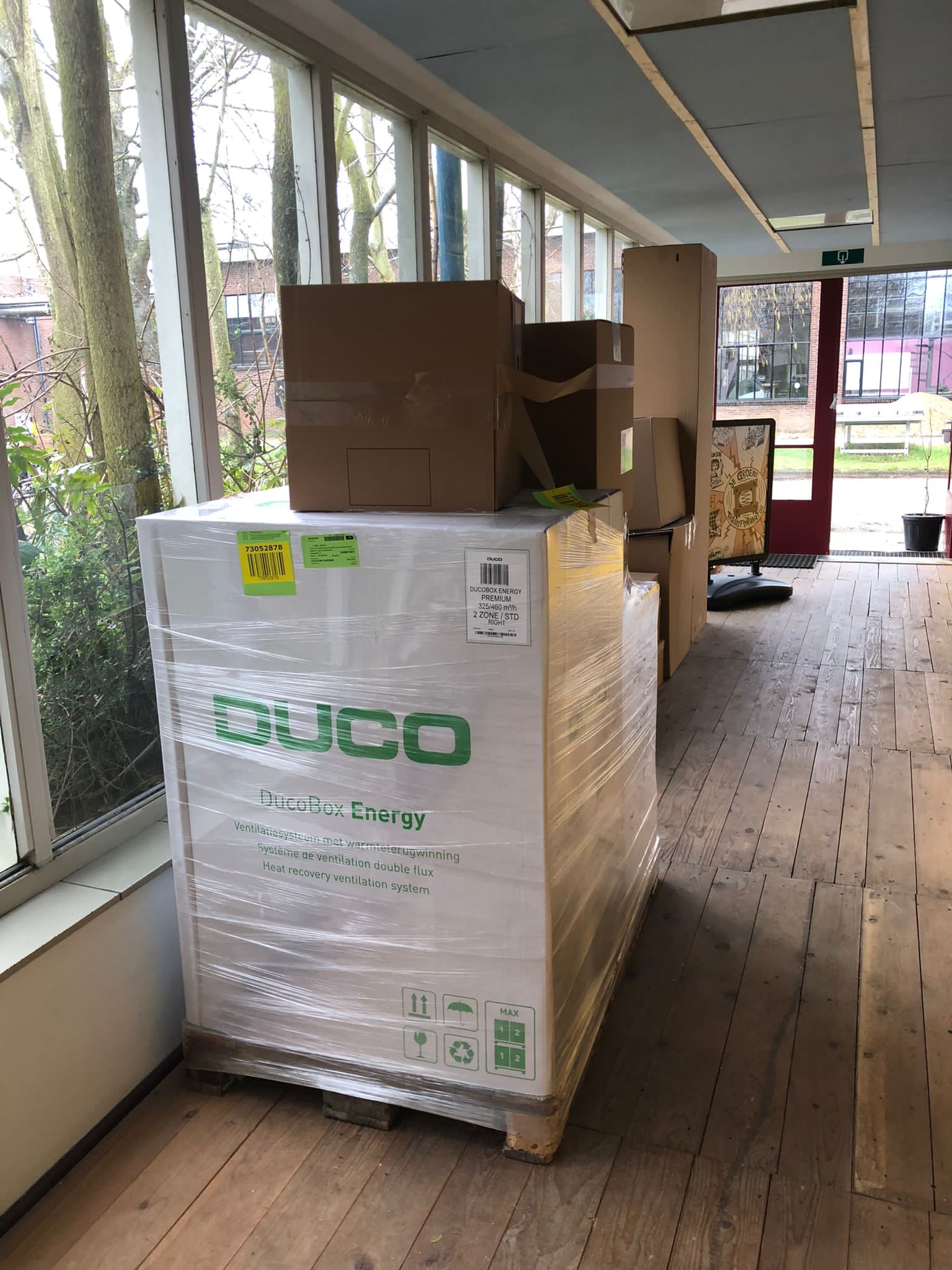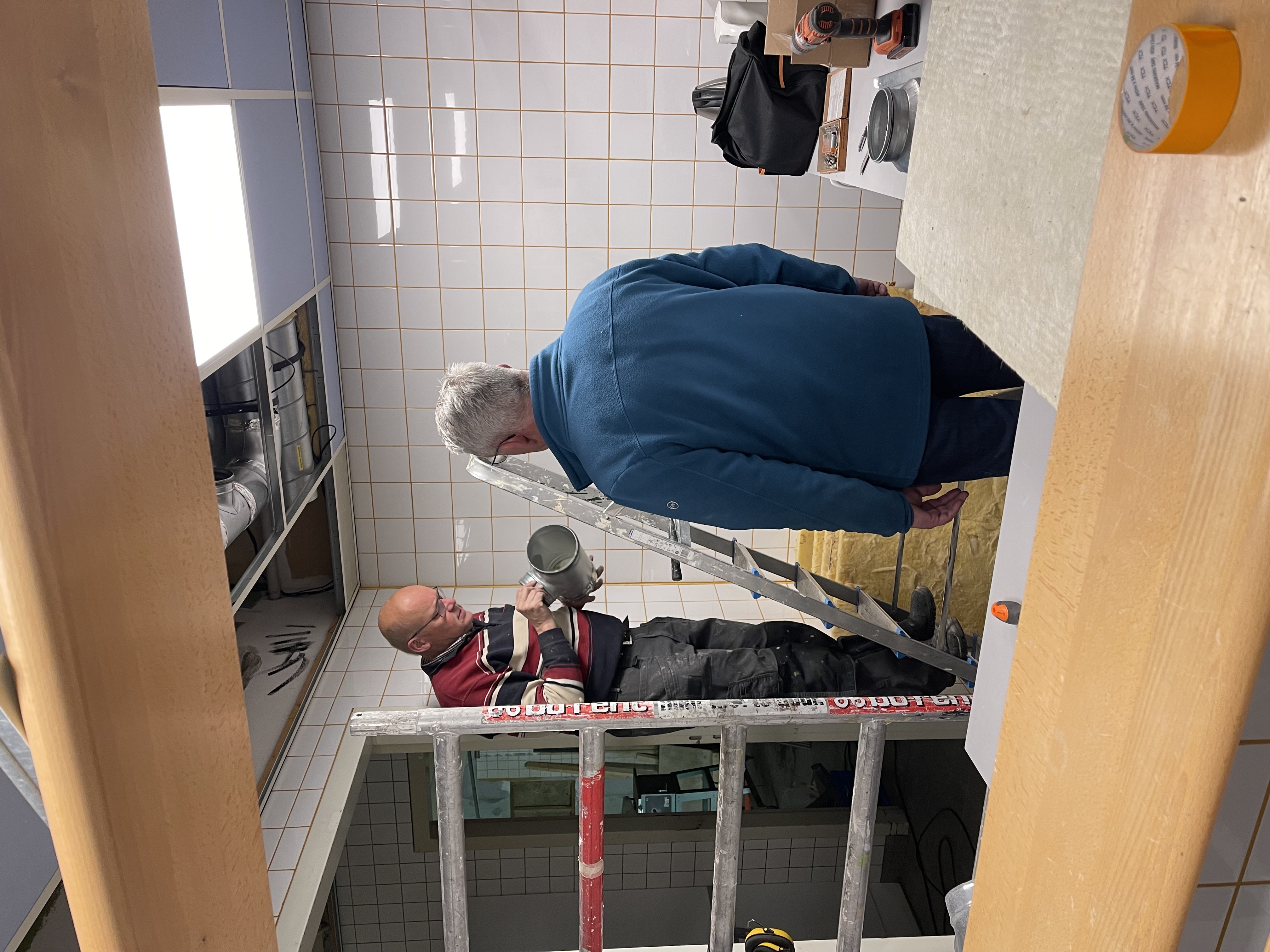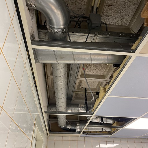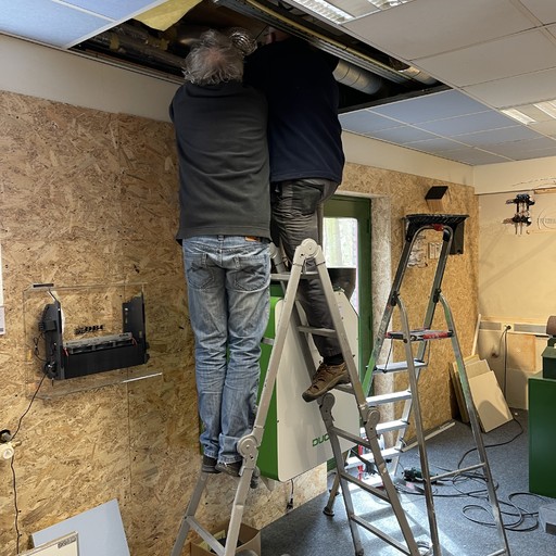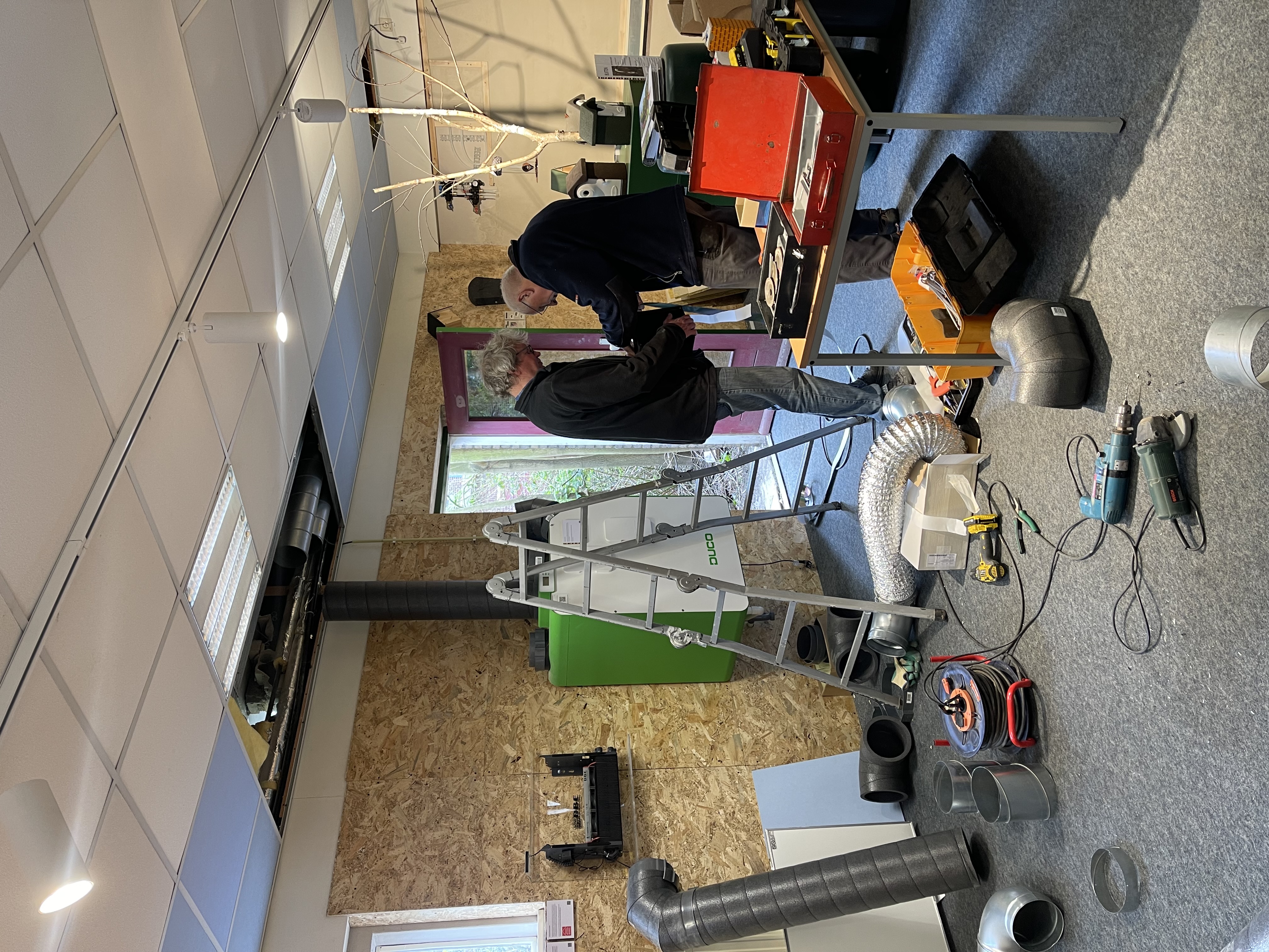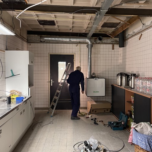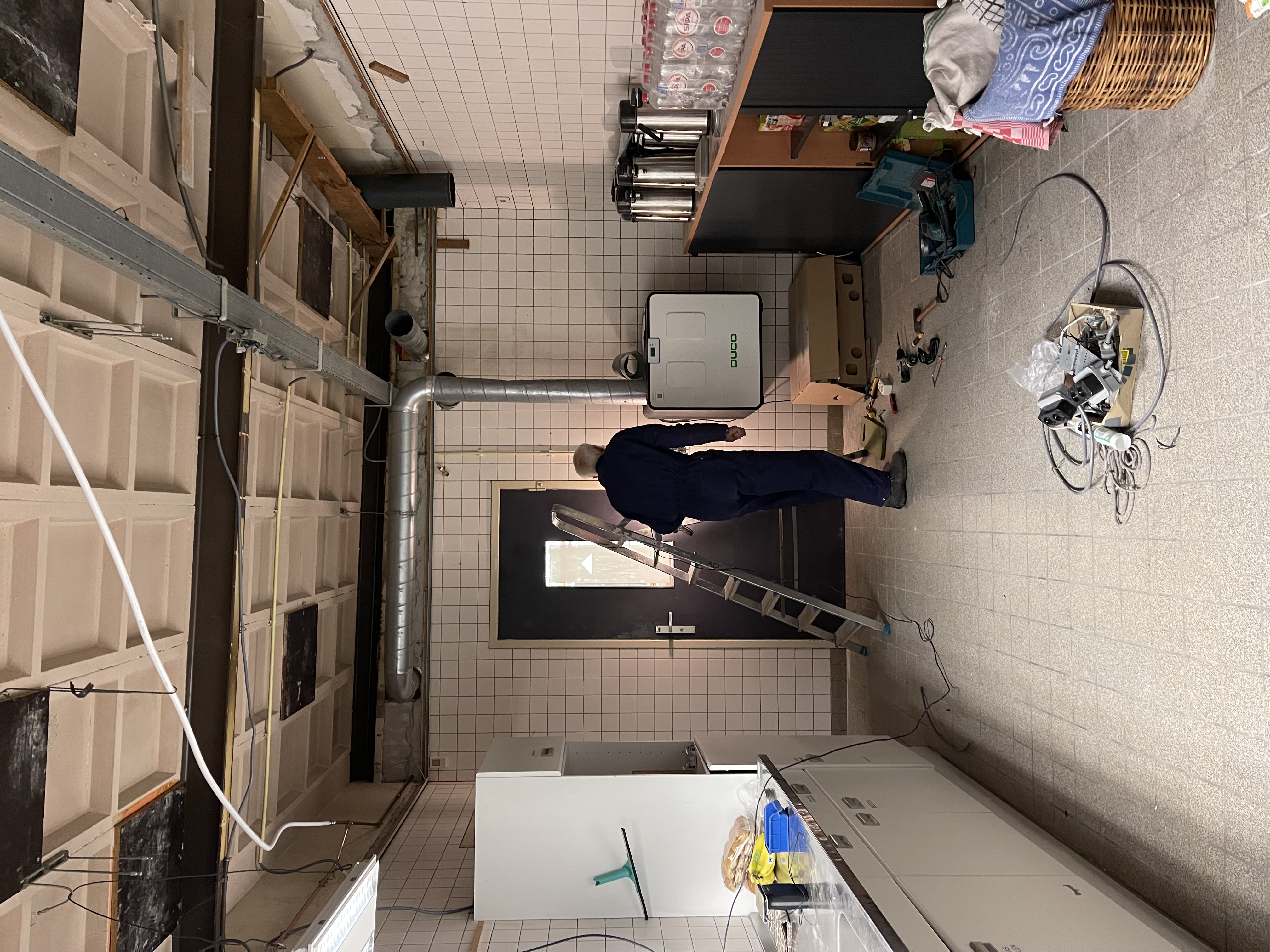 De vrijwilligers hebben het ventilatiesysteem opgehangen, de ventilatiebuizen in het plafond verwerkt en de roosters geplaatst. Een behoorlijke klus, maar wat hebben ze dit goed aangepakt! Ze zijn er een paar weken zoet mee geweest. Uiteindelijk is Wouter van DUCO alles komen afstellen, zodat het systeem ook optimaal werkt.