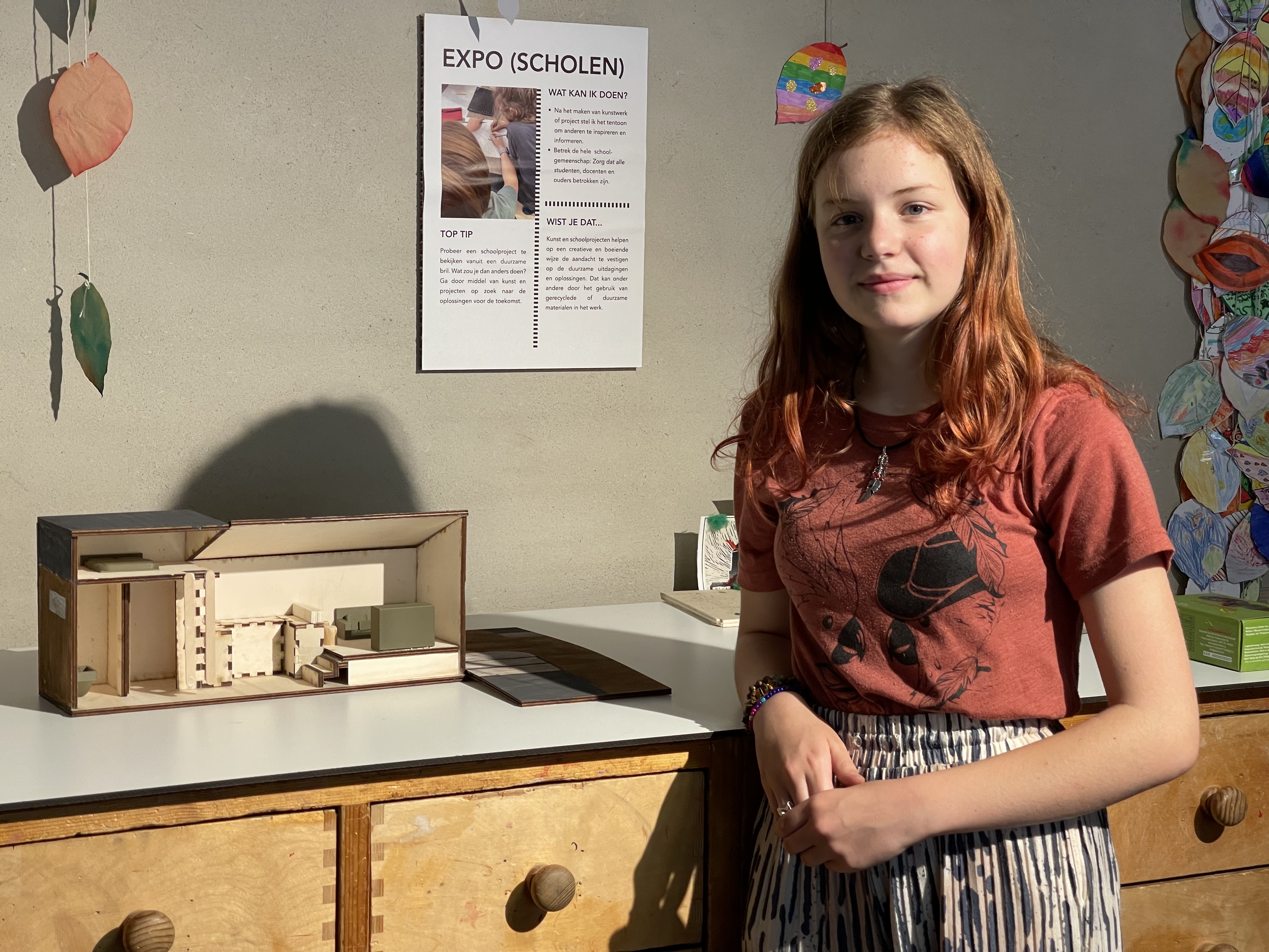 Een paar weken terug kregen we een berichtje van Jules, een van de leerlingen van de middelbare school Wings Agora of hun Tiny House maquette bij ons geëxposeerd mocht worden. Ja natuurlijk kan dat! Wat een Tiny House kan doen is namelijk nadenken over waarom we eigenlijk vaak steeds groter willen wonen, wat automatisch ook meer spullen betekent. En hoe richt je dan efficiënt een ruimte in? Maar ook nodigt het uit om te denken hoe je zelfvoorzienend kan leven.