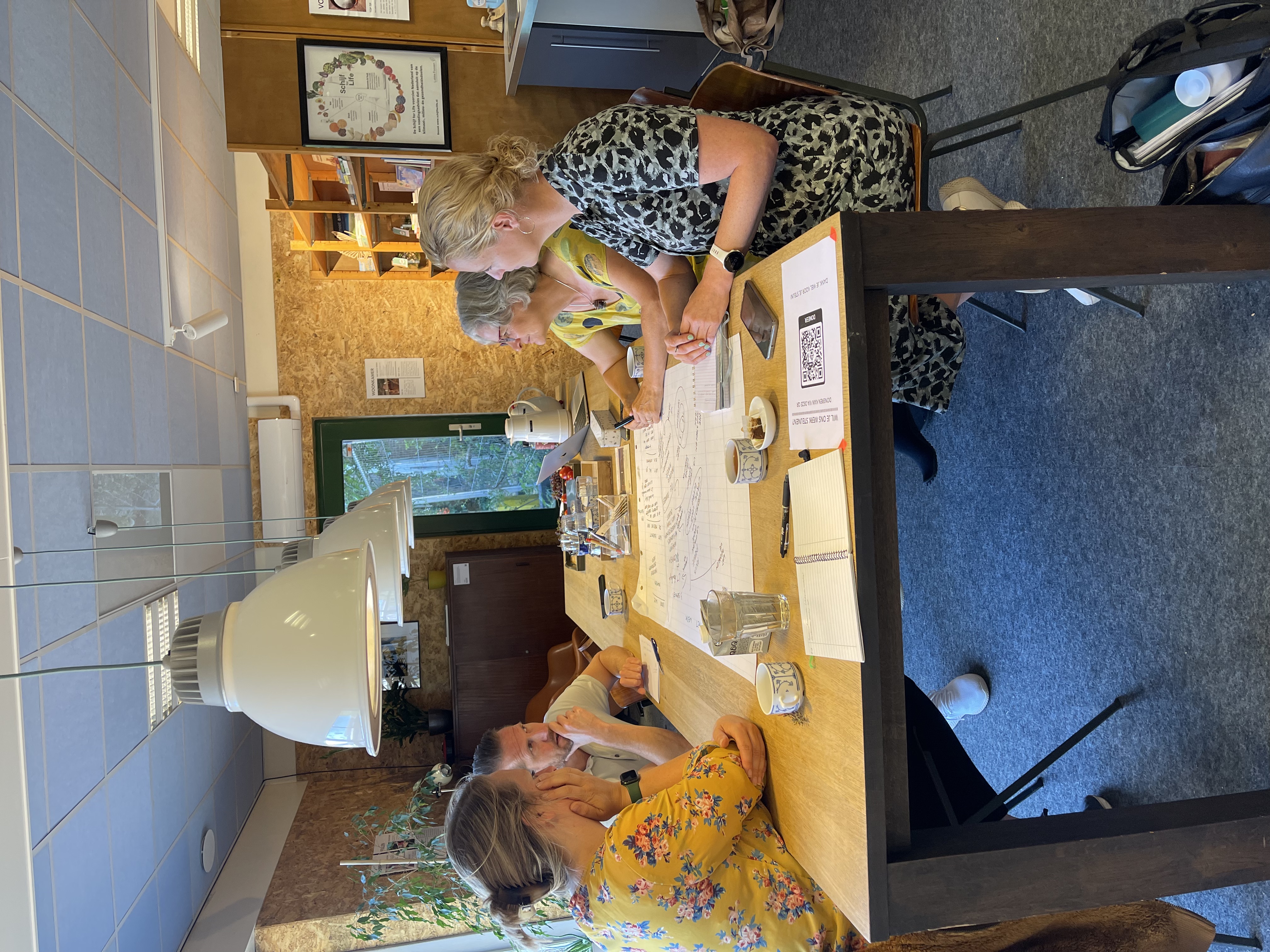 (Op de foto zie je de voorbereidingen bij De Groene Transformator begin september voor deze bijeenkomst, samen met Annemiek en Sven van Gemeente Roerdalen en Ilse en Janneke vanuit De Groene Transformator. Peggy was hier ook bij aanwezig en maakte de foto. Op deze manier ondersteunen we de Gemeente Roerdalen en delen wij onze kennis voor het organiseren van bijeenkomsten.)