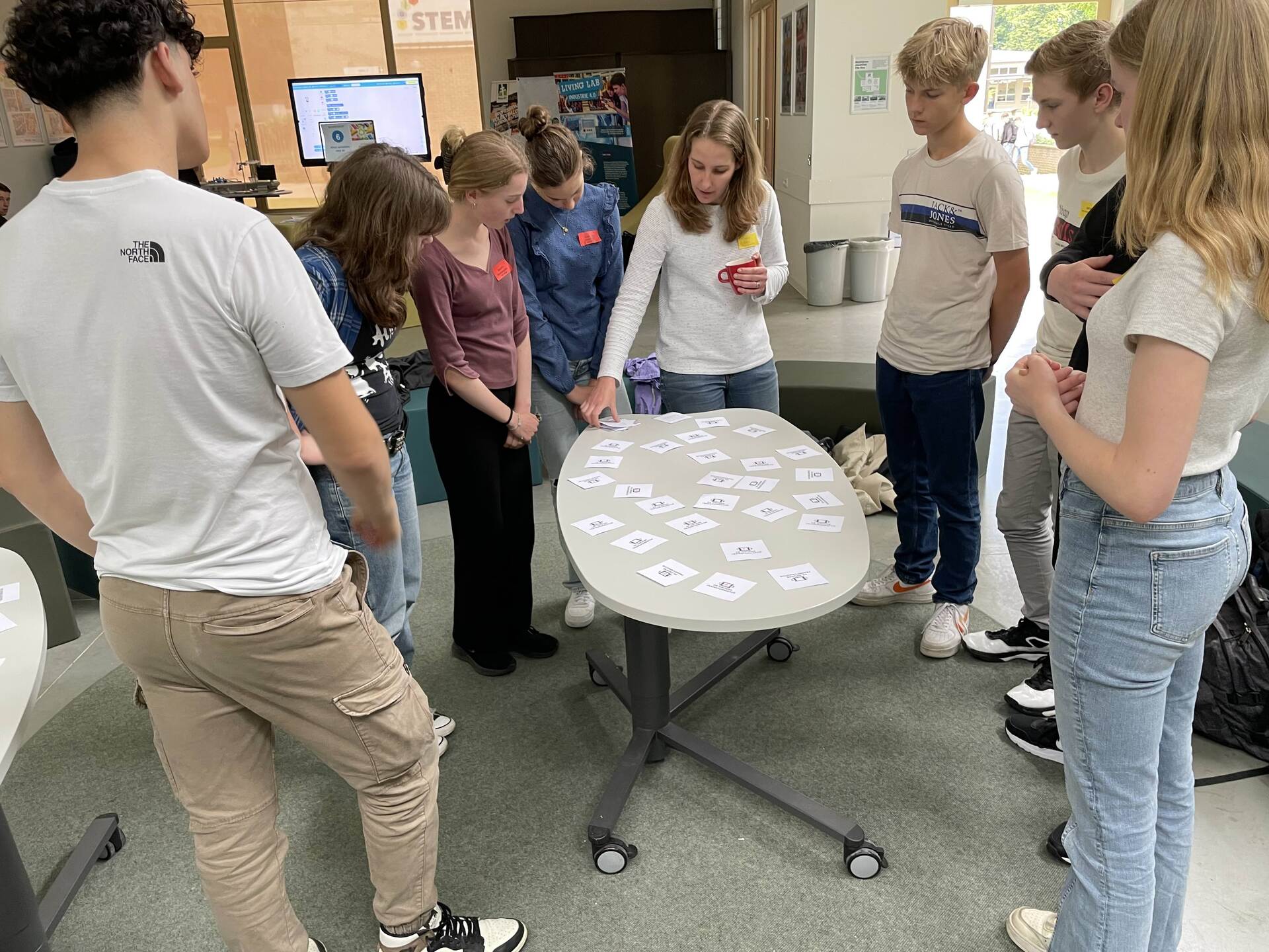 De leerlingen speelden het spel door (i.p.v. identieke plaatjes) kaarten bij elkaar zoeken die samen een zin vormen over voedsel en duurzaamheid. Hierbij was er uiteraard ook ruimte om verdiepende vragen te stellen en het gesprek aan te gaan. Het was een inspirerende dag.